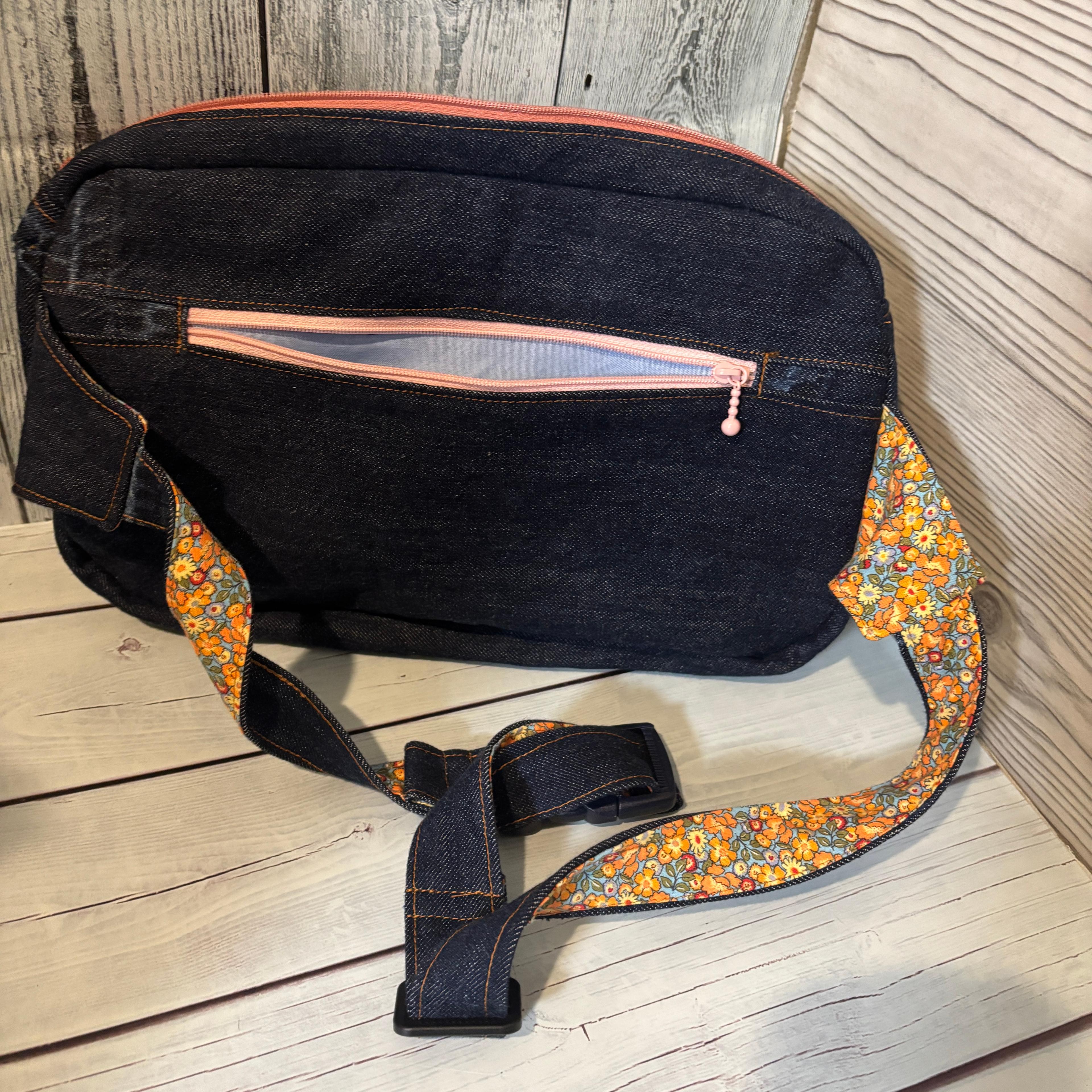 雨でもOK! 撥水生地のエコバッグ ナイロンタフタ 青地に花柄 EBLT17